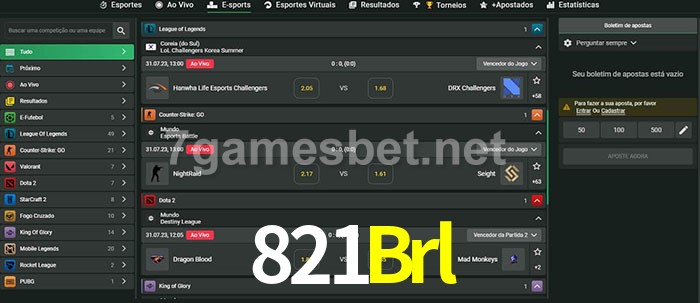 O 821Brl oferece uma grande seleção de opções de apostas em e-sports com probabilidades competitivas